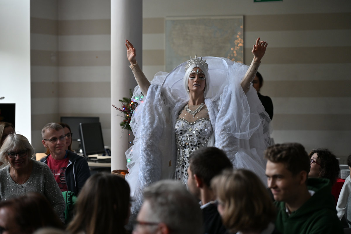 Ogromne wrażenie na uczestnikach zrobiło pojawienie się Królowej Śniegu — postaci prosto ze sceny najnowszego spektaklu Kieleckiego Teatru Tańca – Polish Contemporary/Jazz Ballet. Jej niespodziewana wizyta wniosła do wydarzenia prawdziwie baśniową atmosferę i dopełniła grudniowy klimat spotkania.