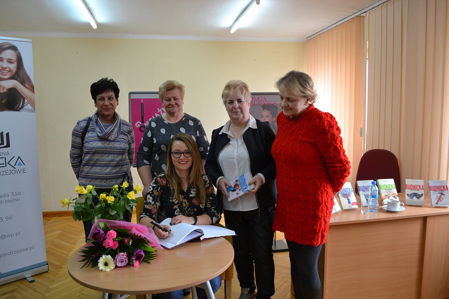 W połowie kwietnia 2019 roku w bibliotekach województwa świętokrzyskiego gościła lubiana pisarka powieści kryminalno-komediowych Olga Rudnicka. Swój pobyt w naszym regionie zaczęła od spotkania w M-GBP w Busku-Zdroju. Następnie, już w ramach programu Dyskusyjne Kluby Książki, spotkała się z czytelnikami w GBP w Klimontowie (11.04), a kolejnego dnia w M-GBP w Jędrzejowie i GBP w Pawłowie. Do Jędrzejowa przyjechały klubowiczki z Wodzisławia, a do Pawłowa zaprzyjaźniony Dyskusyjny Klub Książki z Bodzentyna.