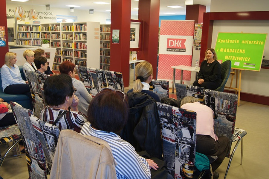 10 września w Gminnej Bibliotece Publicznej w Krasocinie odbyło się bardzo miłe spotkanie z autorką powieści obyczajowych Magdaleną Witkiewicz. Znaną pisarkę oraz przybyłych gości powitała dyrektor biblioteki Magdalena Kowalczyk. Spotkanie pani Magdalena Witkiewicz rozpoczęła od opowieści, jak zaczęła się jej przygoda z pisaniem.
