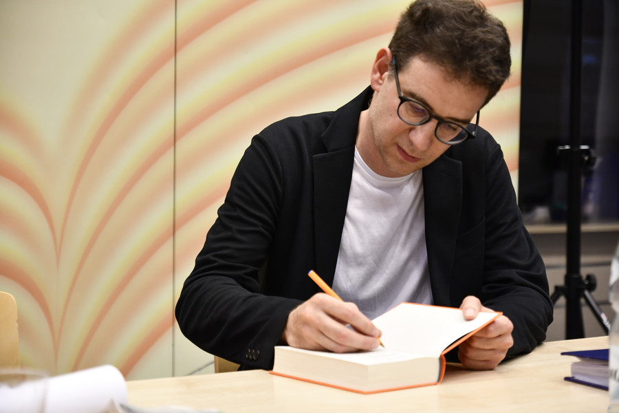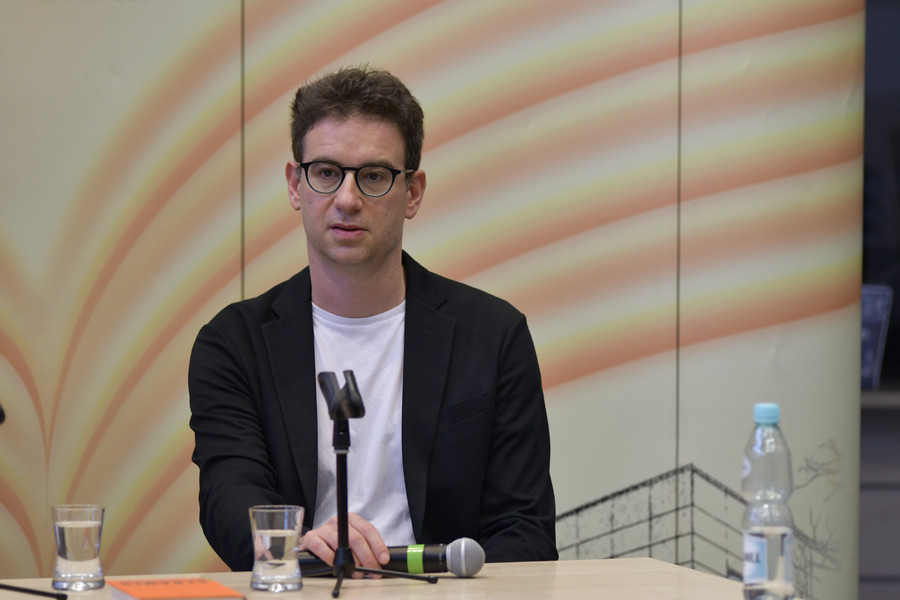 Podczas spotkania pisarz opowiedział o swoim doświadczeniu pracy asystenta niewidomej osoby, które częściowo przyczyniło się do napisania książki Reisefieber. Inspiracją do stworzenia jej była również historia Szwedki, od której nasz gość wynajmował mieszkanie. Kobieta od wielu lat nie miała kontaktu z synem, którego bardzo kochała. Autor chciał napisać o trudnościach w komunikacji pomiędzy bliskimi osobami. Pisarz wyjaśnił także, skąd wziął się tytuł kolejnej powieści – Książka. Nazwy rozdziałów tego utworu to nazwy różnych rzeczy, np. okulary, fifka, zeszyt. Wytłumaczył, że ta książka też stanie się takim samym przedmiotem rodzinnym, jak te przedmioty, które w niej opisał. Pan Łoziński opowiedział o procesie tworzenia powieści Stramer, nad którą pracował 8 lat. Książka jest inspirowana historią dziadka pisarza, który wychowywał się w przedwojennym Tarnowie. Autor szukał śladów rodzeństwa dziadka w bibliotekach i archiwach w Tarnowie, Krakowie, Warszawie i Paryżu. Pod koniec spotkania nasz gość chętnie odpowiadał na liczne pytania spływające od publiczności oraz uczestników spotkania on-line.