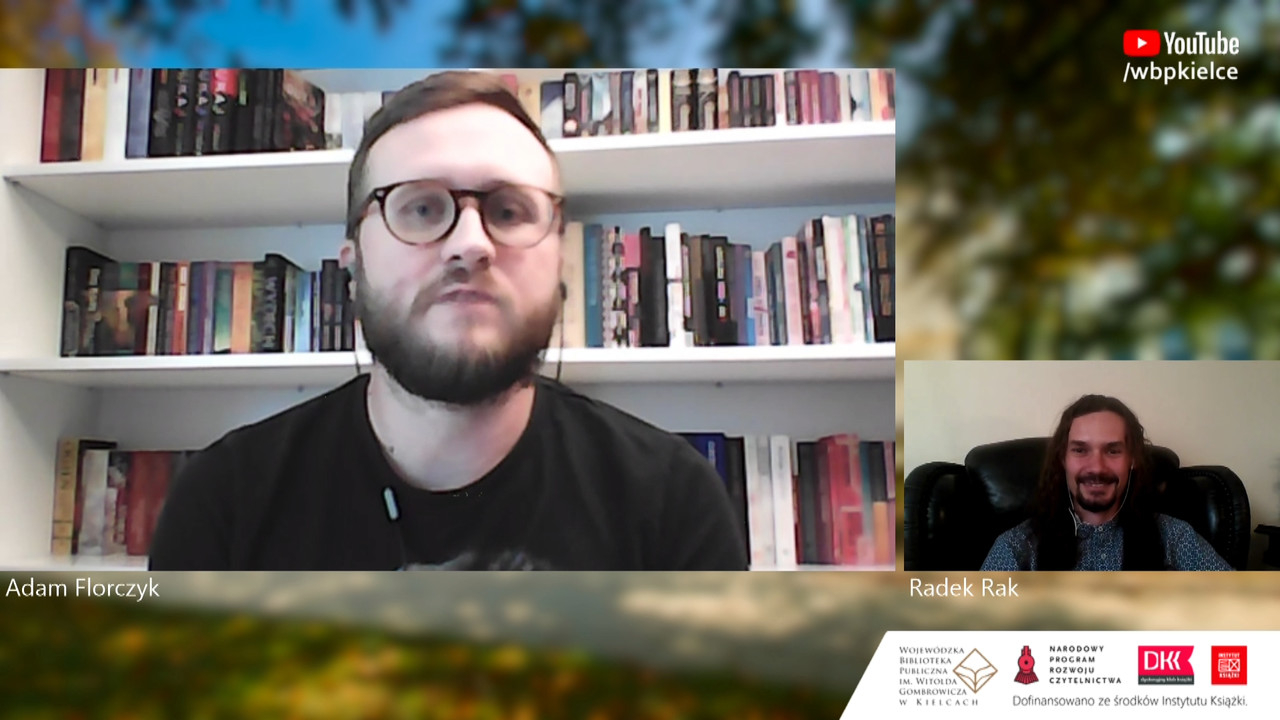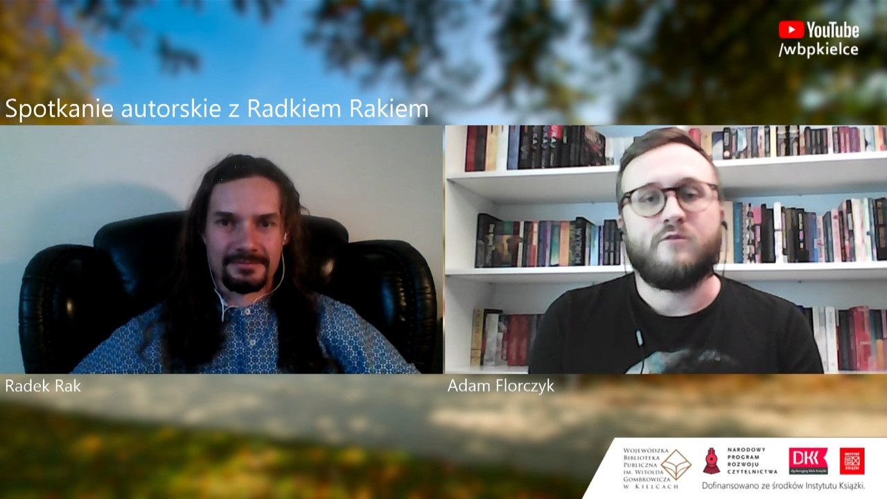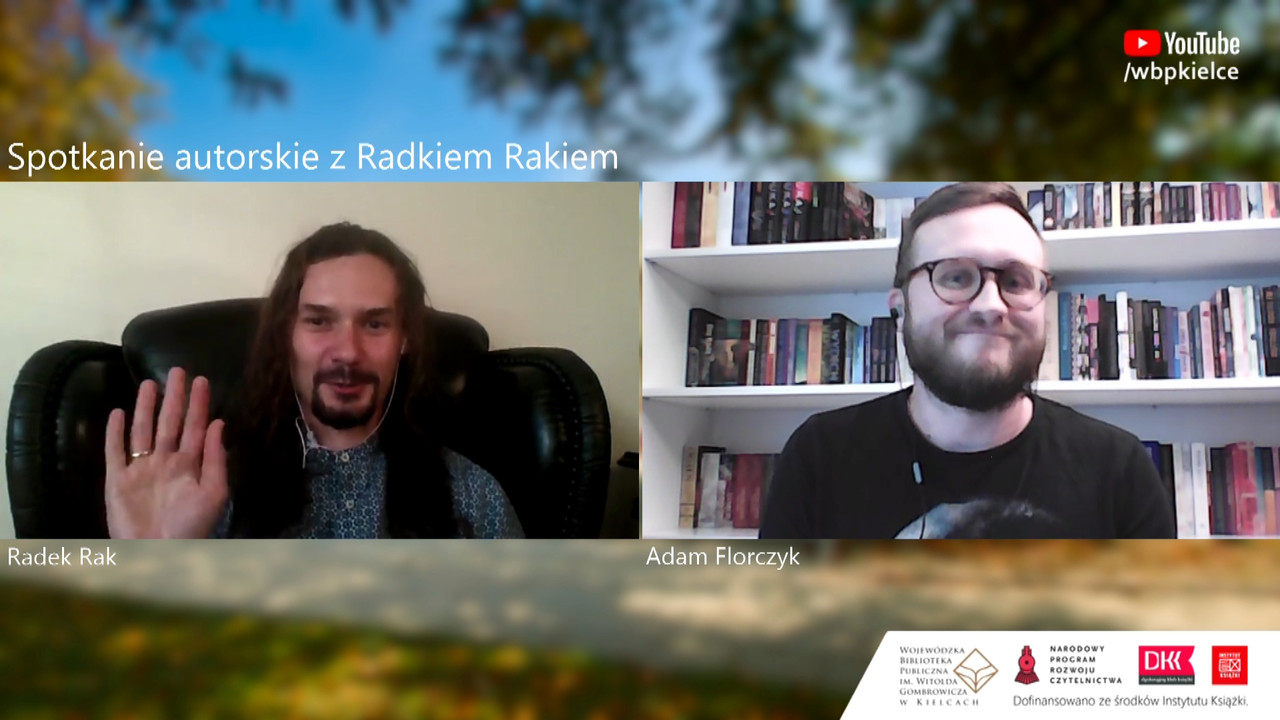 14 czerwca gościem naszej Biblioteki był Radek Rak – pisarz i lekarz weterynarii pochodzący z Dębicy. Autor swoje pierwsze teksty zamieszczał na forum "Nowej Fantastyki" pod pseudonimem Ajwenhoł. W 2014 r. wydał pierwszą powieść Kocham Cię, Lilith. Kolejna książka Puste niebo otrzymała Złote Wyróżnienie w Nagrodzie Literackiej im. Jerzego Żuławskiego oraz nominację do Nagrody im. Janusza A. Zajdla. Pisarz jest laureatem Nagrody Literackiej Nike 2020, Nagrody im. Jerzego Żuławskiego i Nagrody "Nowej Fantastyki" za powieść Baśń o wężowym sercu albo wtóre słowo o Jakóbie Szeli. Tytuł ten też był nominowany do Nagrody Literackiej Gdynia i Nagrody Fandomu Polskiego im. Janusza Zajdla.