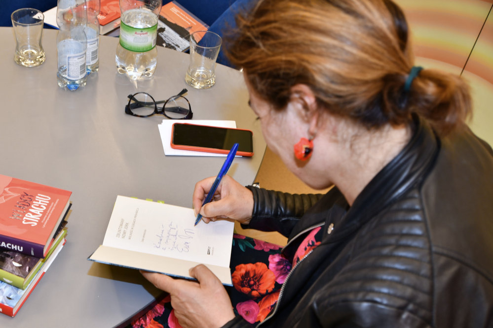 Na koniec spotkania pisarka wyjaśniła uczestnikom, jak zaczęła się jej przygoda z podcastem Jak się starzeć bez godności, który prowadzi w duecie z Magdaleną Grzebałkowską. Na jego podstawie powstała lekka i zabawna książka o tym samym tytule, która miała ostatnio premierę na rynku wydawniczym.