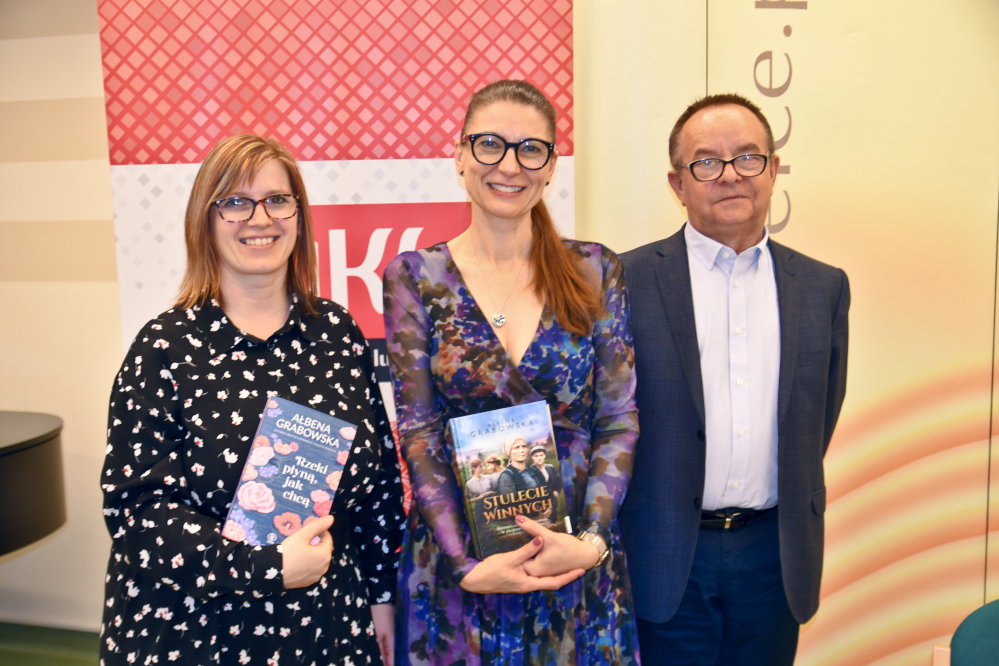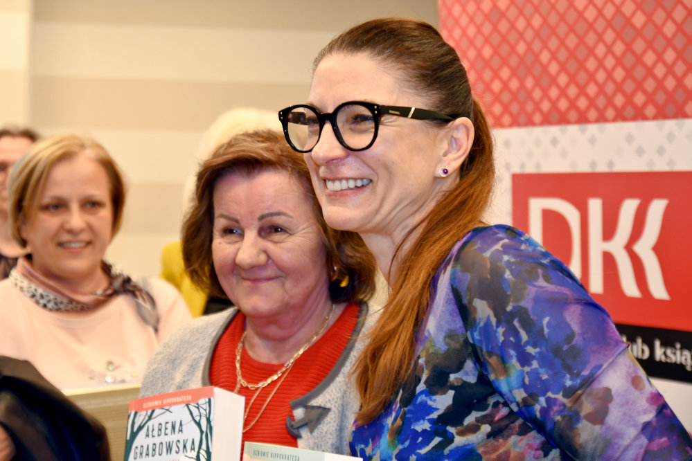 Rozmowa podczas spotkania skupiona była właśnie wokół ostatnich powieści pisarki - Matki i córki oraz cyklu Uczniowie Hippokratesa. Matki i córki to saga rodzinna, która przedstawia losy czterech pokoleń kobiet na tle burzliwej historii XX wieku. Każda z bohaterek jest naznaczona stygmatem cierpienia, nie potrafi odciąć się od trudnej przeszłości. Autorka przyznała, że w książce tej zmierzyła się z bardzo trudnymi tematami takimi jak zsyłka na Syberię, rzeczywistość obozu koncentracyjnego, czy życia w czasie PRL. Wyjaśniła, że temat dziedziczenia traum jest jej bliski nie tylko jako pisarce, ale także jako lekarzowi neurologowi. Z kolei z cyklu Uczniowie Hippokratesa czytelnicy dowiadują się, jak rozwijała się medycyna w XIX wiecznej Europie. Pisarka włożyła wiele wysiłku i zaangażowania, żeby w powieści ożywić legendarne postaci, które miały duży wpływ na rozwój medycyny. Autorka powiedziała, że już od wielu lat myślała o napisaniu sagi medycznej, ale długo zastanawiała się nad, jak w najlepszy możliwy sposób pokazać kwestie merytoryczne. Podczas spotkania dowiedzieliśmy się także o tym, jak to się stało, że nasz gość został lekarzem oraz że w młodości pani Ałbena chciała być aktorką. Nie mogło zabraknąć wątku ekranizacji sagi Stulecie Winnych. Pisarka opowiedziała o tym jak była konsultantem medyczno-historycznym na planie serialu telewizyjnego i uczyła m.in. Olafa Lubaszenkę, jak zagrać doktora z lat 1914-1918. Wyznała też, że obecnie odpoczywa od pisania powieści, pracując przy musicalu o Mikołaju Koperniku, do którego napisała libretto.