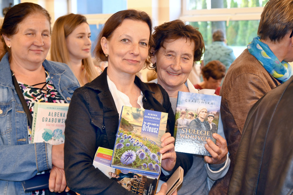 11 maja gościliśmy w naszej bibliotece znaną i uwielbianą przez naszych czytelników pisarkę - Ałbenę Grabowską. Autorka debiutowała w 2011 roku książką Tam, gdzie urodził się Orfeusz, którą pisała dla swoich dzieci - by przybliżyć im bułgarskich przodków i kulturę regionu Rodopów. Od tego czasu napisała ponad 20 książek, z których największą popularność zyskała saga Stulecie Winnych. Jej ekranizacja gromadziła przed ekranami ponad 3-milionową widownię. Ałbena Grabowska w swoim dorobku ma książki dla dzieci, powieść fantasy dla młodzieży, współczesne powieści obyczajowe, kryminał czy powieść sensacyjną. Ważną pozycją w jej dorobku literackim jest powieść Matki i córki, na uwagę zasługuje też trylogia Uczniowie Hippokratesa.
