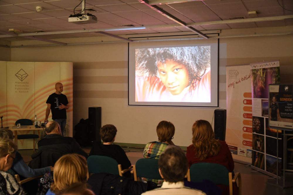 Robert Gondek odwiedził 20 afrykańskich krajów o czterech z nich opowiedział i wyświetlał przeźrocza na spotkaniu w bibliotece.