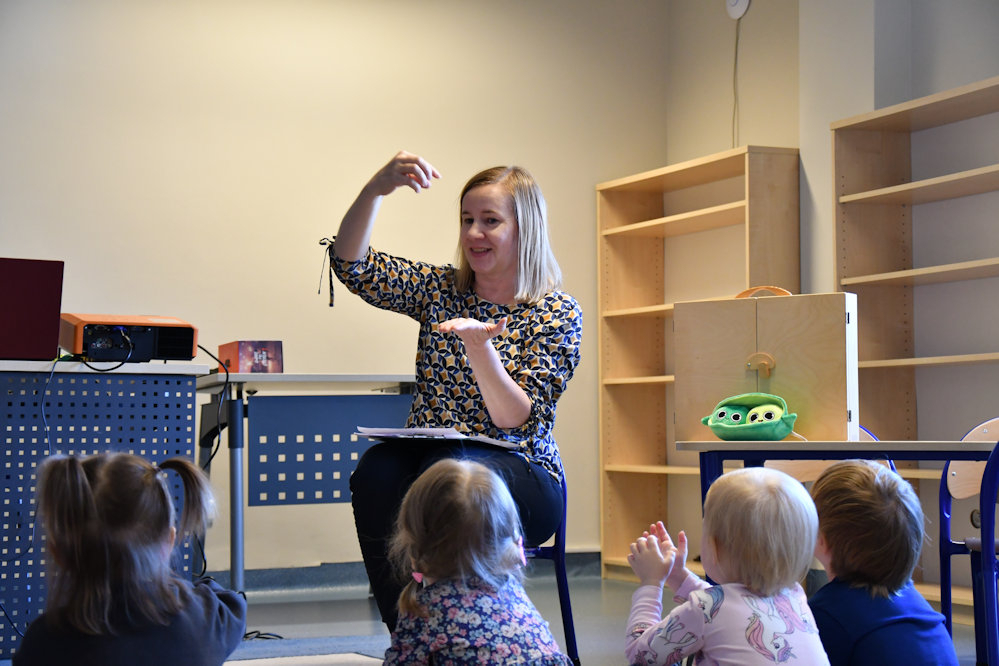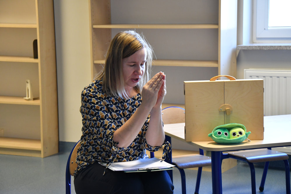 21 października odbyły się zajęcia z cyklu Smyk w krainie książek. Odwiedziła nas grupa 3-latków wraz z opiekunkami z Przedszkola Wyspa Odkrywców. Podczas spotkania zatytułowanego Gucio – zielony groszek dzieci obejrzały opowiadanie z teatrzyku Kamishibai pt. Groszek. Czas upłynął na zabawach ruchowych przy muzyce Przedszkolne nutki na maj, konkursie zręcznego przenoszenia groszka na łyżce, pracach plastycznych i wierszykach paluszkowych. Na zakończenie wszyscy otrzymali przepis na pyszną potrawę z zielonego groszku.