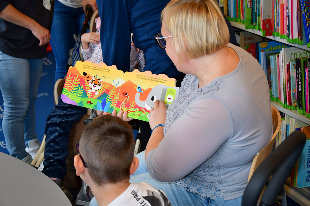 28 października odbyły się zajęcia z cyklu Moja wyobraźnia nie zna granic pt. Witajcie w naszych bajkach. W zaczarowany świat wprowadziło przedszkolaki nagranie teatrzyku Kamishibai, zamieszczone na kanale YouTube Biblioteki, zatytułowane Calineczka. Ciekawe zabawy przy muzyce, pytania z kapelusza, odkrywanie magicznych rekwizytów, zagadki rysunkowe, rywalizacja przy przebieraniu ziarenek, zaangażowały dzieci w poznawanie baśni i bajeczek. Przedszkolaki zainscenizowały kilka zakończeń historii: Jaś i magiczna fasola i Hop, hop Książę z bajki, a pamiątką spotkania były samodzielnie ozdobione postaci bajkowych bohaterów.