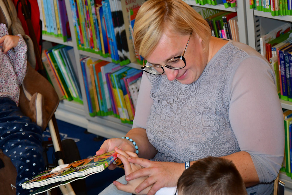 Dnia 29 października odbyły się kolejne zajęcia z cyklu Jestem wyjątkowy. Odwiedziła nas grupa dzieci z Ośrodka Rehabilitacyjno-Edukacyjno-Wychowawczego w Kielcach. W ramach zajęć dzieci wysłuchały „bajki z ogonkiem” zatytułowanej Tygrys Karmel. Następnie za pomocą magicznej latarki pomogły małpce z czytanki Dobranoc Małpko szukać ukrytych na obrazku przyjaciół. W dalszej części zajęć dzięki grze edukacyjnej Zwierzaki i tablicy manualnej ćwiczyły motorykę rąk i dobierały obrazki w pary. Na koniec dzieci relaksowały się przy zabawach paluszkowych.