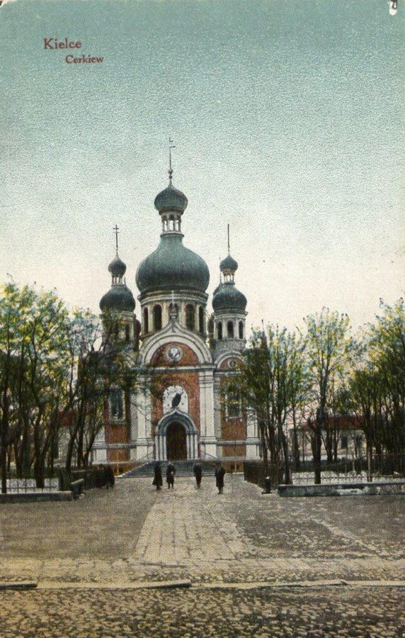 Nieistniejąca już Cerkiew Wniebowstąpienia Pańskiego wzniesiona została w latach 1867-70 na potrzeby garnizonu wojskowego i rosyjskich urzędników napływających do Kielc po powstaniu styczniowym.