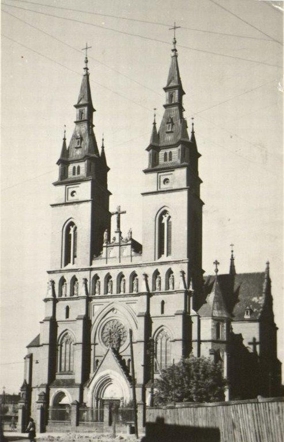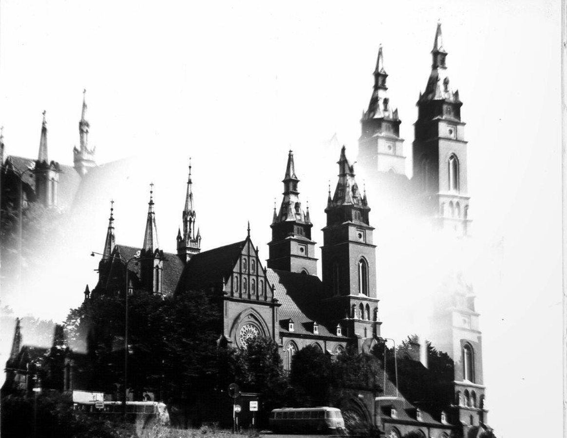 Na pocztówkach i zdjęciu Janusza Buczkowskiego – kościół św. Krzyża w różnych okresach jego istnienia.