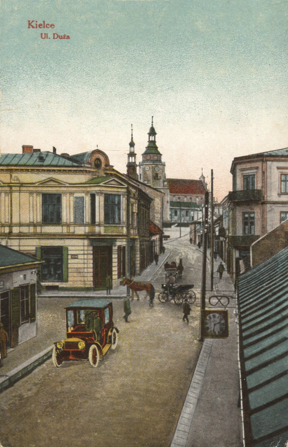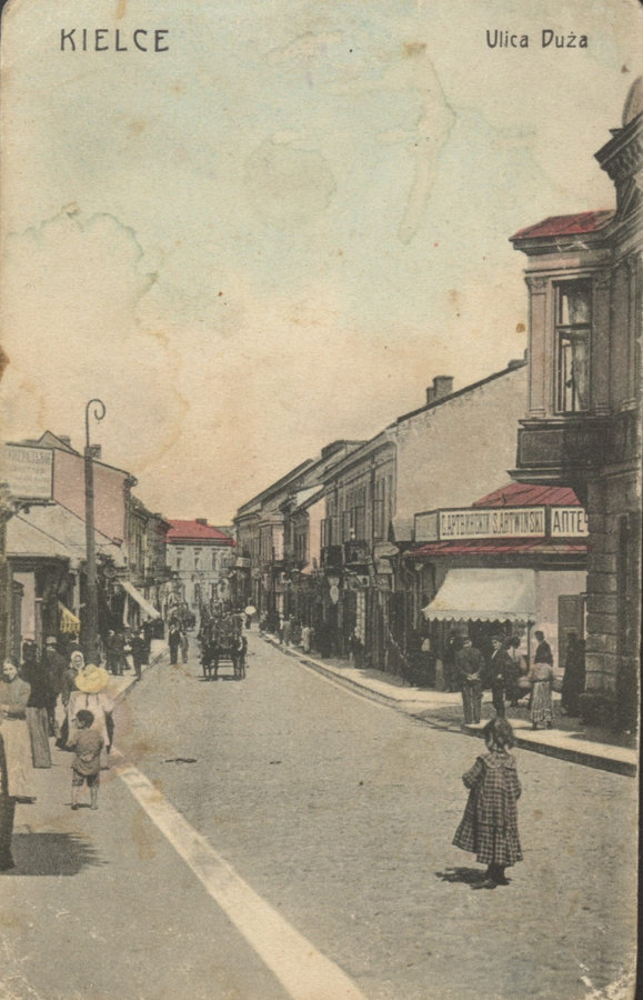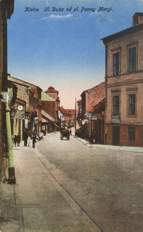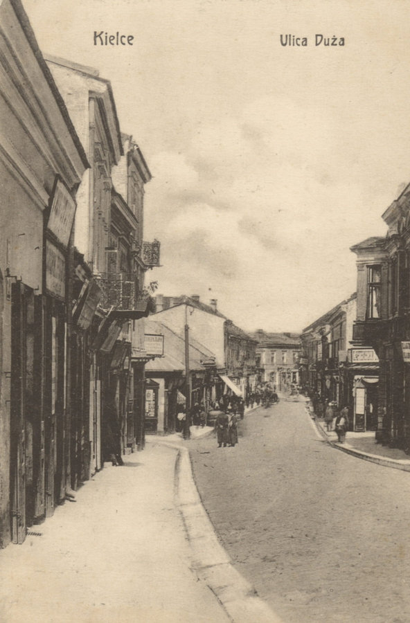 Zawikłana przeszłość ulicy Dużej ma istotne znaczenie historyczne. Przy niej powstały pierwsze księgarnie i drukarnie: drukarnia Ignacego Balintha (od 1818) , księgarnia Leona Możdżeńskiego (od 1846), na ulicy Dużej również widniał szyld apteki Stefana Artwińskiego, prezydenta Kielc.